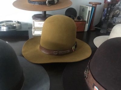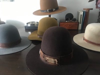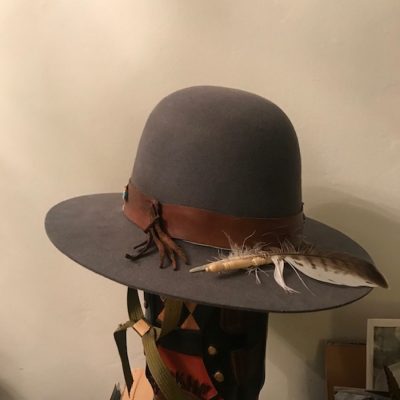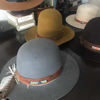 The Southwestern region of the United States is home to hundreds, if not thousands, of tribal communities. I would discover artistic beauty and inspiration within the landscape, language, and ranch culture of these Indigenous lands. The original quality of the vintage materials for this collection is directly sourced from New Mexico and Utah. The Beaver fur body is from a 60’s vintage Stetson. The beautifully crafted beadwork is original to the creativity of our host, as is the saddle iron and clay leather. On the ranch, saddle making and leatherwork are par for the course.