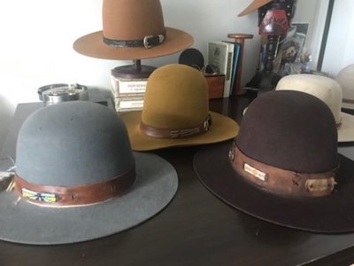 Southwestern hat styles with leather, brass, and copper.