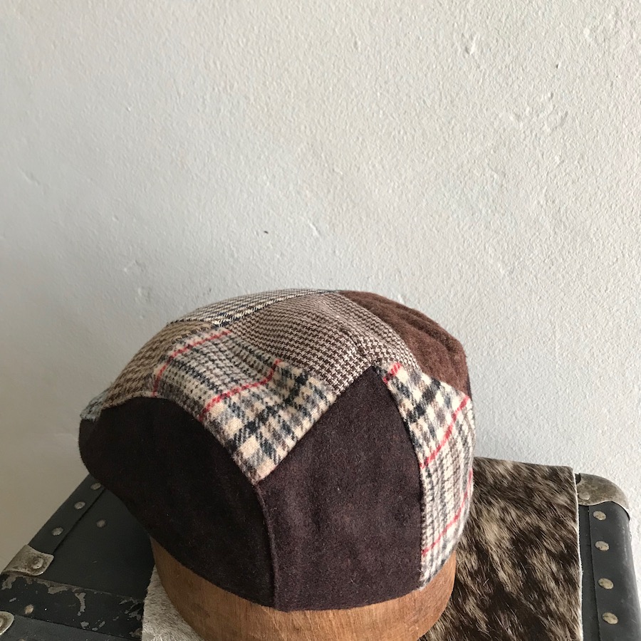 Vintage flat cap brown houndstooth patchwork flat cap Size L/XL includes cotton strip inner band, A stitched front bill, no logo. Fits head sIze L/XL or 718 – 714