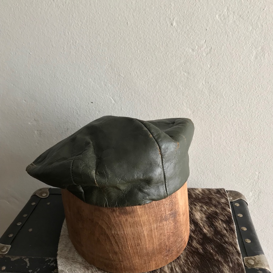 IVY CAP Size 738 XL genuine green leather ivy flat cap with twin snap button. Union made no tags great quality, Two piece construction.