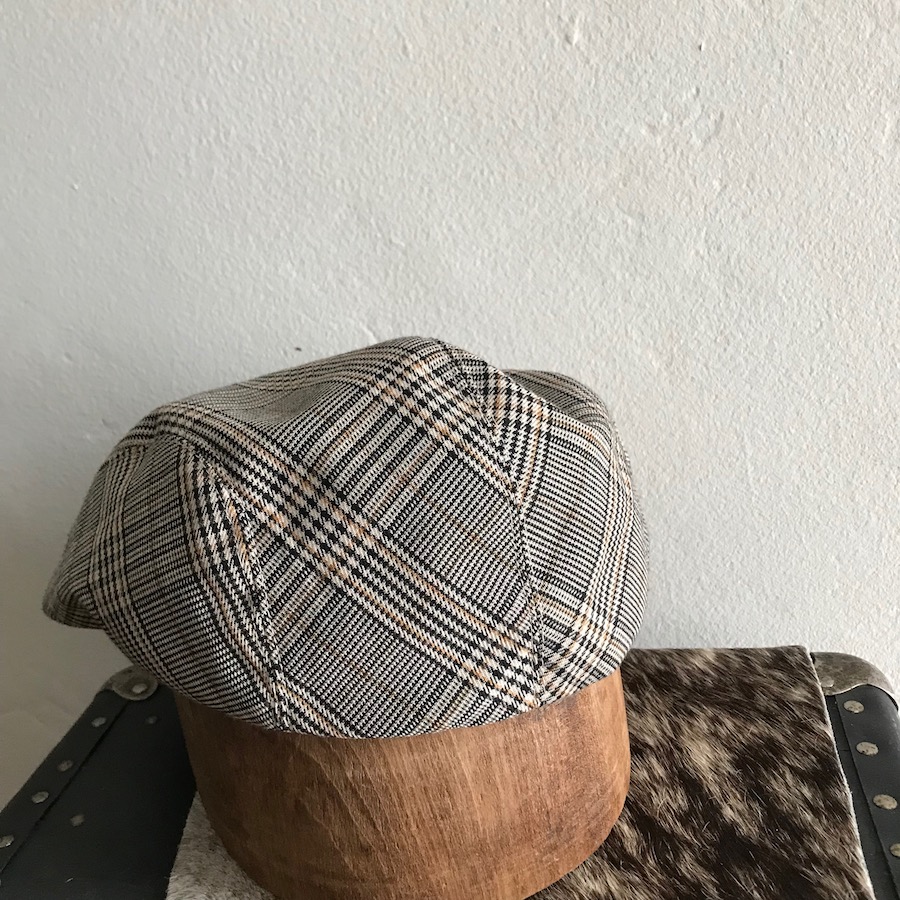 IVY FLAT CAP GRAY STRIPED LINNEN DARK INNER LINER STITCHED FRONT