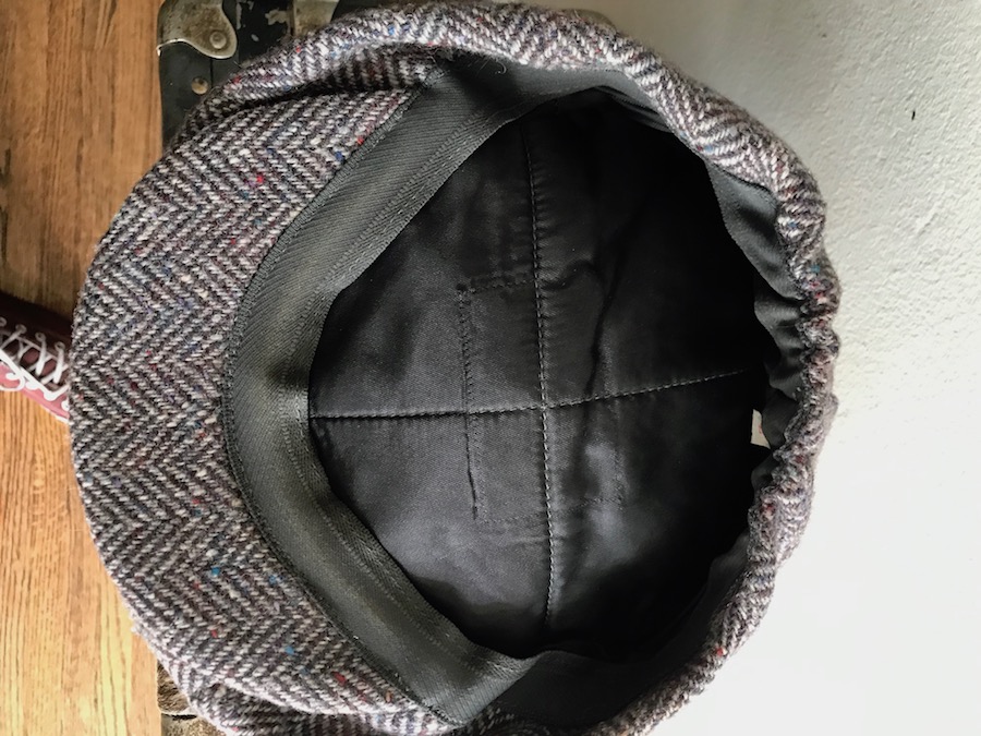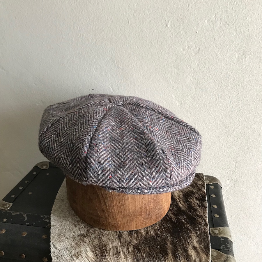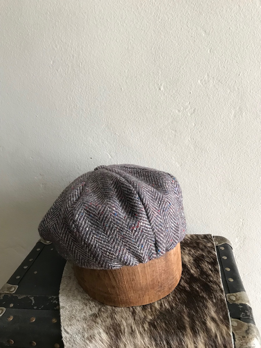 Wool tweed pattern dark grey newsboy cap with singel snap button size large