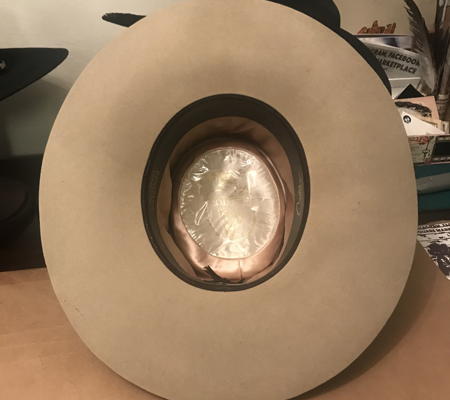 SRV Inspired Vintage Resistol. Rare Western flat brim hat made in America 1980’s made of premium fur felt, with. telescope crown and raw edge brim.